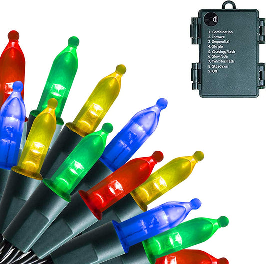50 LED Outdoor Christmas Lights, 16 FT Mini String Light with 8 Modes, Waterproof Tree Lights for Indoor Outdoor Patio Garden Party Wedding Christmas Decoration, Multi-Color