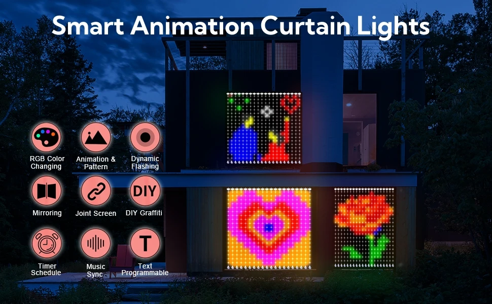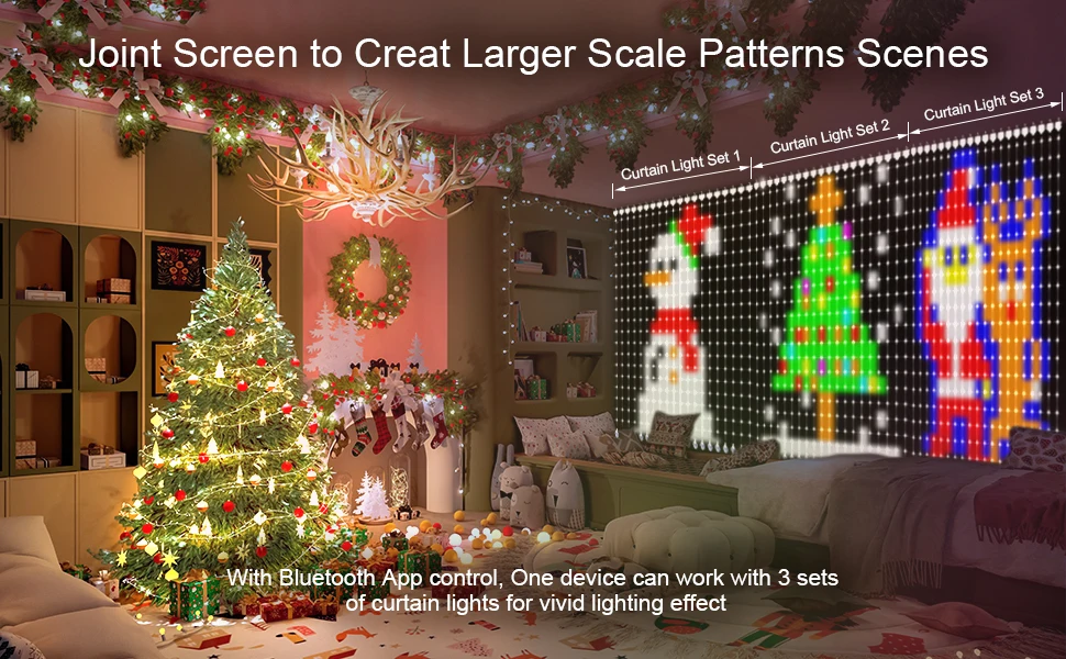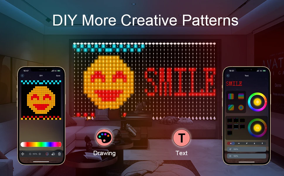 App Control Curtain Wall Lights Plug in DIY Pattern and Text Programmable
