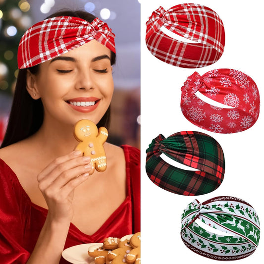 4Pcs Christmas Headbands for Women - Snowflake Santa Snowman Xmas Tree Holiday Hair Bands, Festive Gift Hair Accessories (Plaid)