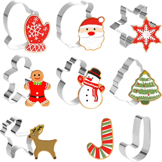 10 Pieces Christmas Cookie Cutter Set - Snowflake,Santa Claus, Gingerbread Holiday Cookie Cutters for Xmas Winter Holiday Party