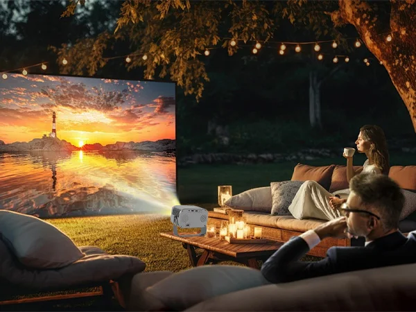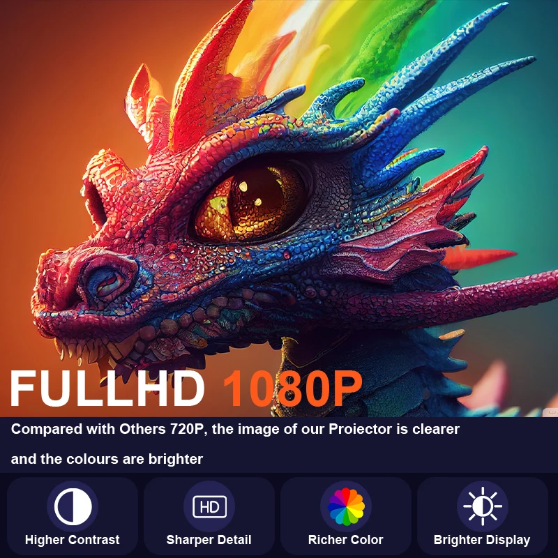 【1080P support/4K decoding/Remote Control Focus】XBJ outdoor projector. Experience great-quality visuals with 1080P Full HD support and 4K decoding. The remote-controlled electric focus lets you adjust sharpness with a click easily. Ideal for family movie nights, college dorms, bedroom movies, or business meetings.