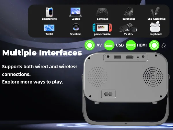 【Whisper-Quiet (<25dB) + Portable Bluetooth Setup】XBJ portable projector. Less than 25dB noise means zero distraction in bedrooms or offices. Lightweight design fits in backpacks, and Bluetooth connects to HIFI speakers for upgraded sound. Take it camping, in car, or on business trips—portable entertainment that travels with you.
