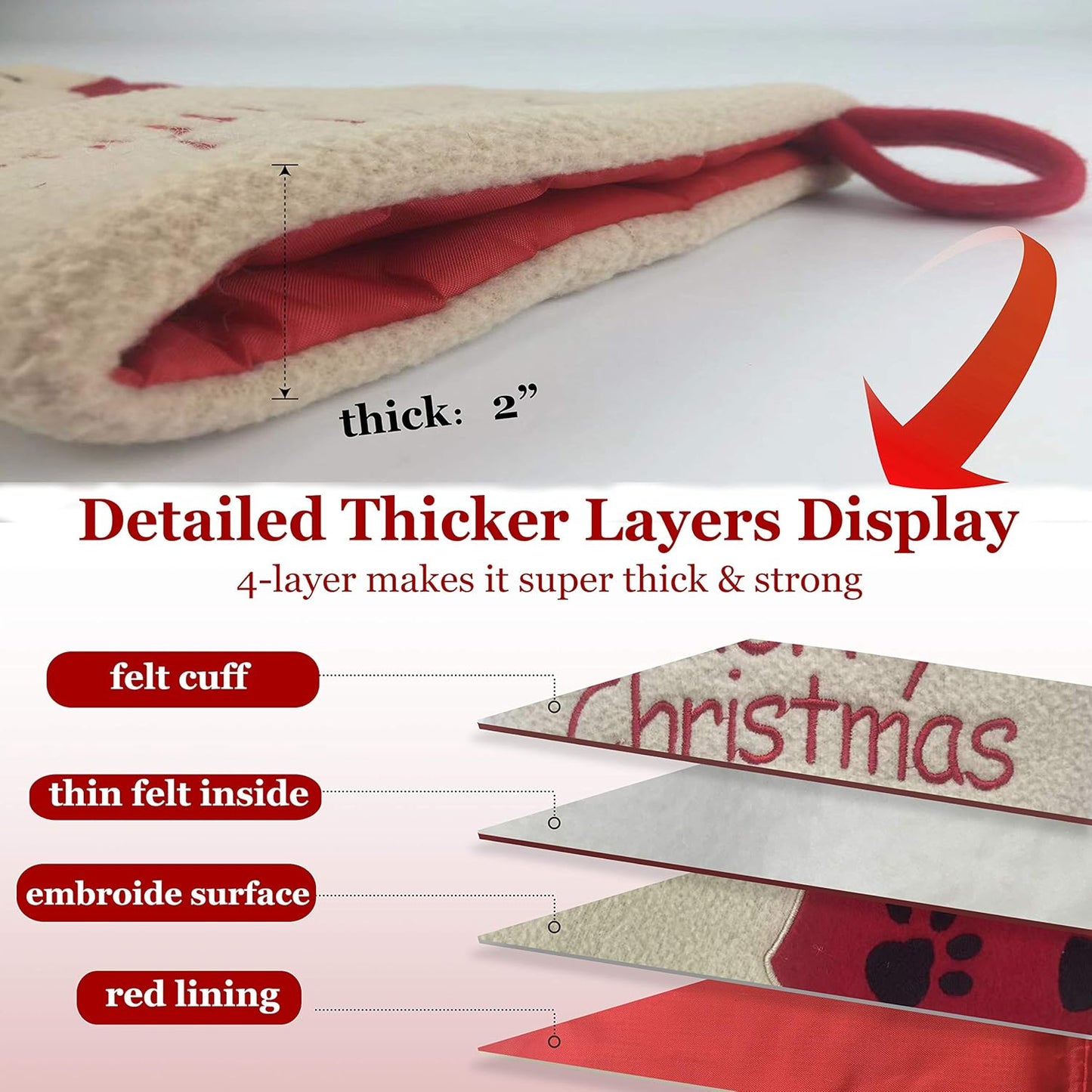 18’’ Dog Felt Christmas Stockings Paws Embroidered for Pets Puppy Red Xmas Stocking Gift Bag Cuff Lovely Home Holiday Decoration