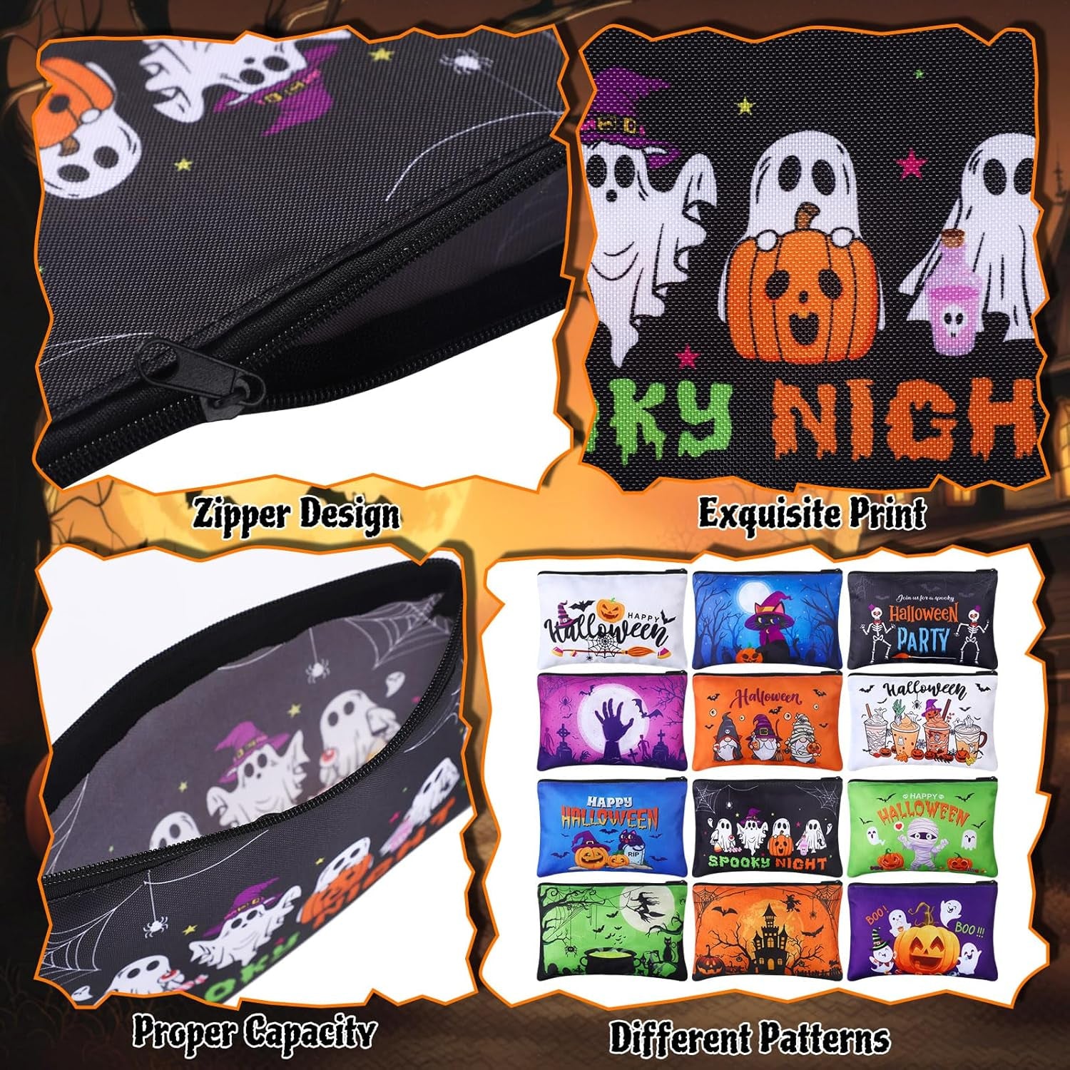 - Package Include: in order to fully meet your festive gift needs, we provide a Halloween-themed makeup bag set; You will receive 24 Halloween makeup bags that come in 12 styles with different Halloween theme patterns, 2 for each; You can give bags according to your friends or family's preferences