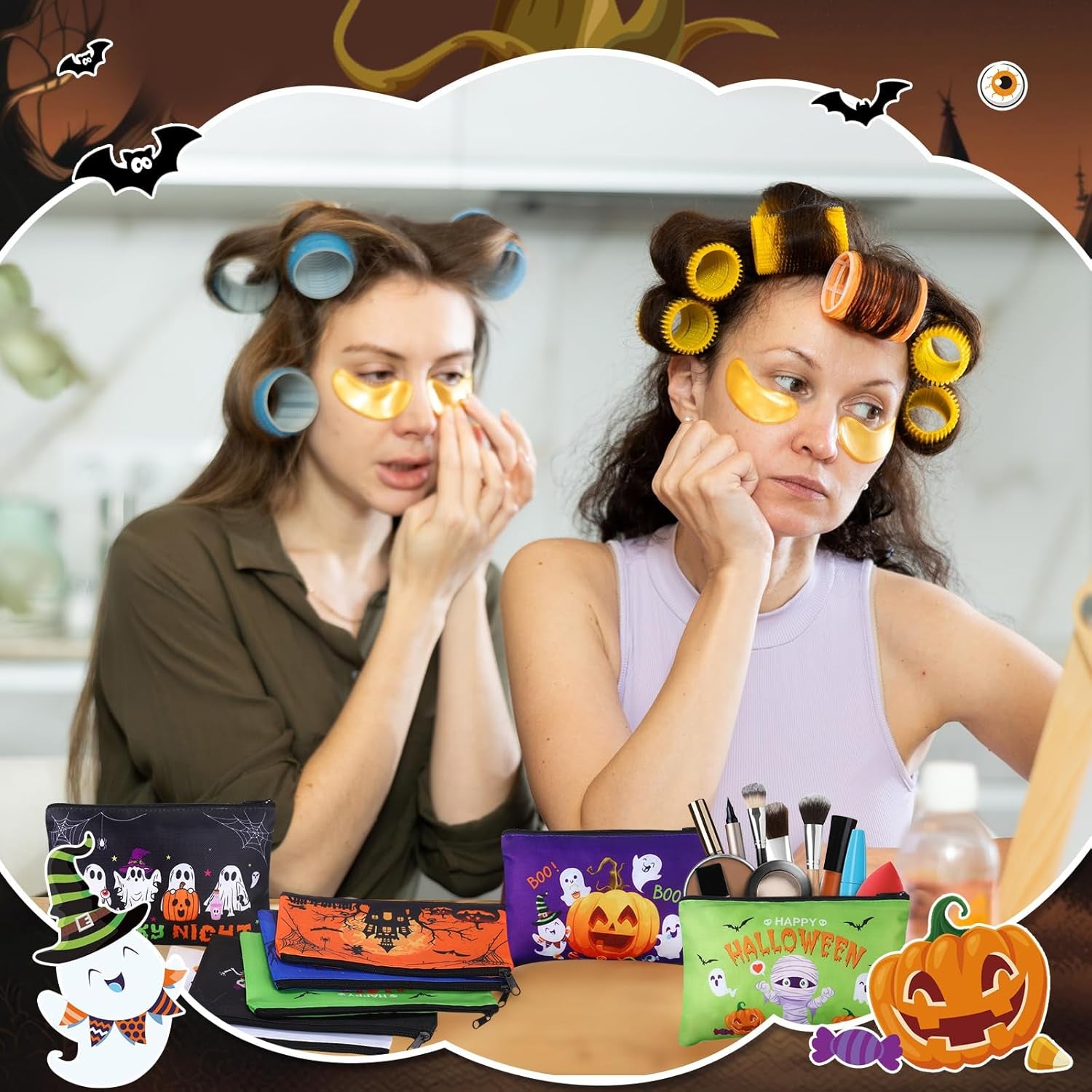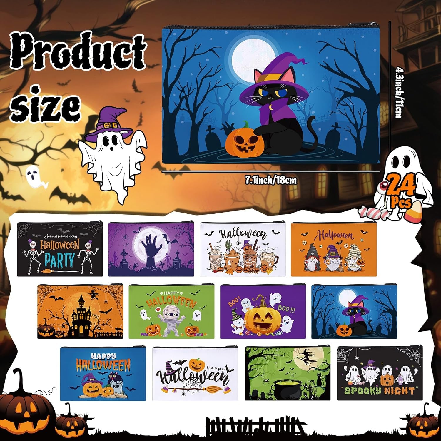 24 Pcs Cosmetic Bags Makeup Bags Bulk Cute Portable Pouches with Zipper Travel Toiletry Organizer Purse Women'S Gift Birthday Party Favors(Halloween)
